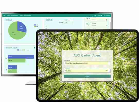 依循 ISO 国际标准建置出符合国际标准的全方位碳管理平台 (AUO Carbon Agent),,,,其中温室气体盘查模组可协助客户将组织、、产品与供应链的碳排放源数据,,透过系统内建的系数资料库自动计算出碳排量,,,提升整体盘查作业的效率,,,,并以此拟定长期减碳策略,,,,达到低碳转型、、净零碳排的目标。。。