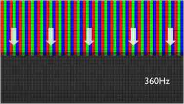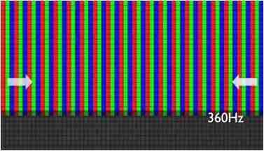 传统液晶驱动是从左到右单向进行,,在画面更新速度愈来越愈快的情况下,,,,位于驱动线路末端的右下角区域,,,画素的闸极来不及在短时间内获得足够电压,,,,无法显示出正确的颜色资讯。。。 |