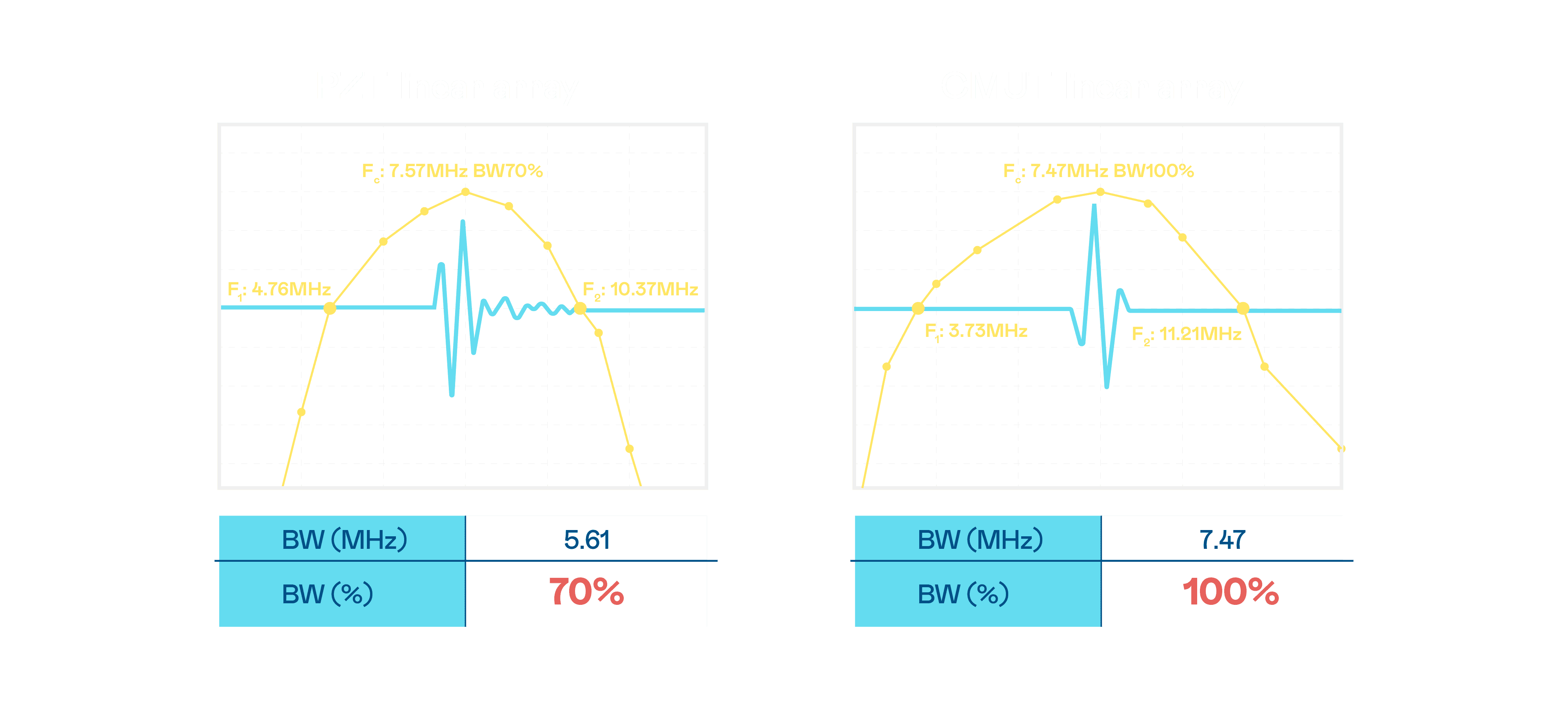 CMUT 技术是一种用电容式微机电元件来产生超音波讯号的技术。。。与传统 PZT 压电式技术相比,,CMUT 频宽增加 30%,,,更宽频的超音波讯号让影像解析度大幅提升,,,是实现高影像品质医疗超音波扫描、、促进精准医疗发展的关键技术。。